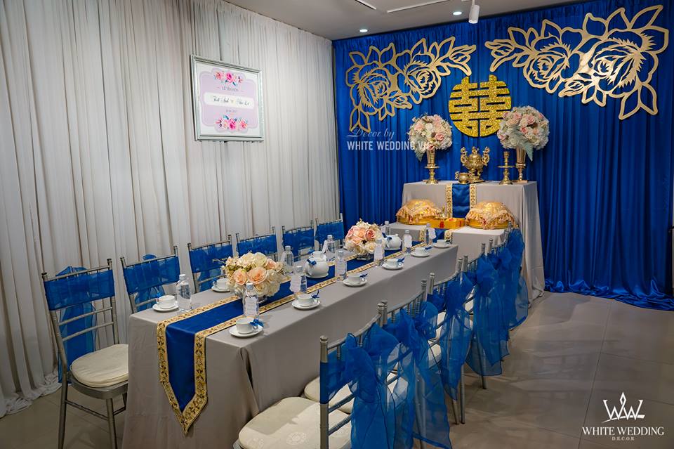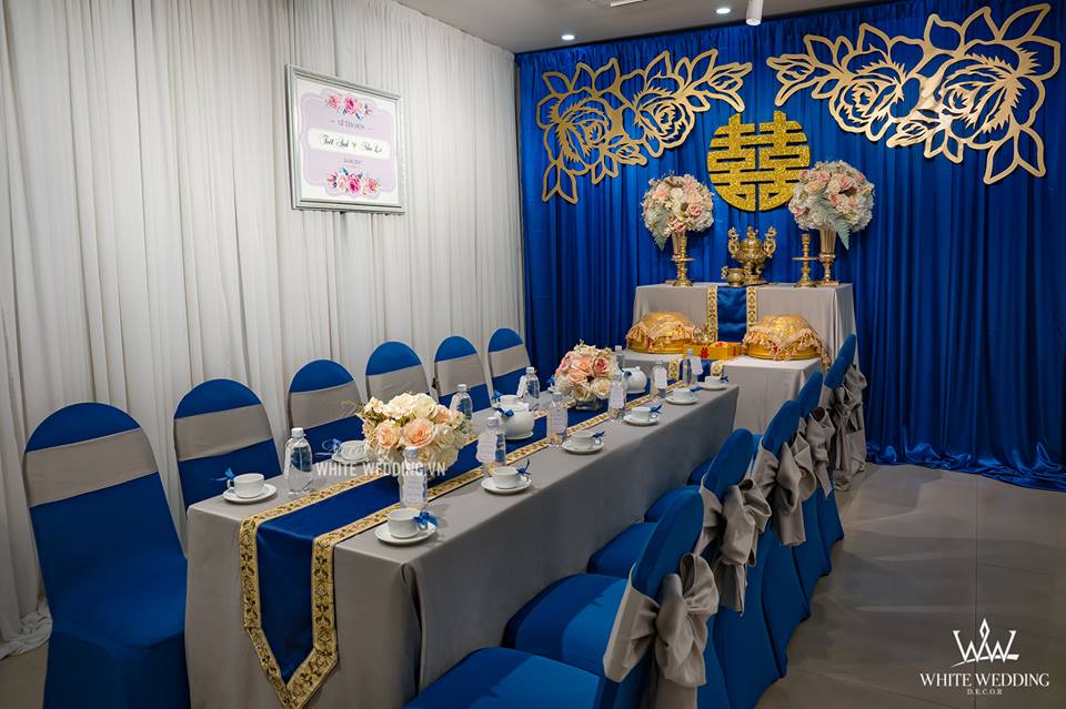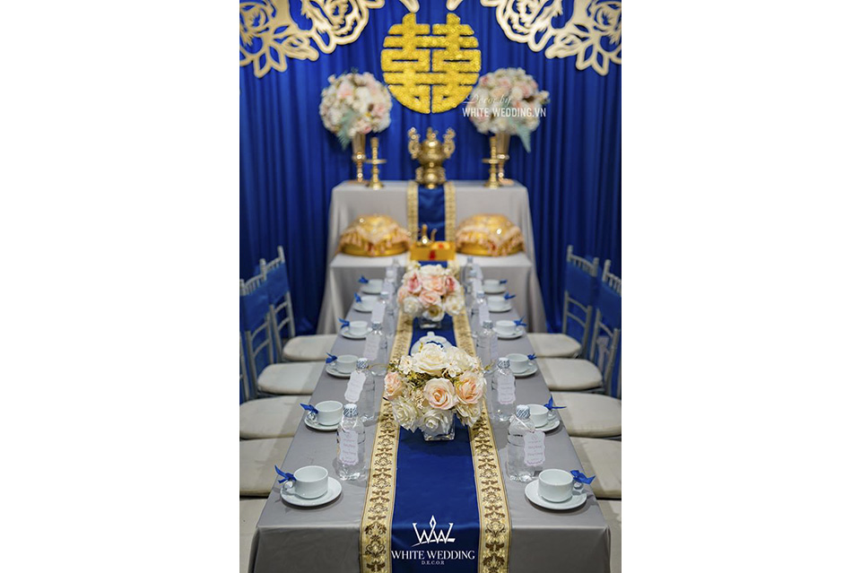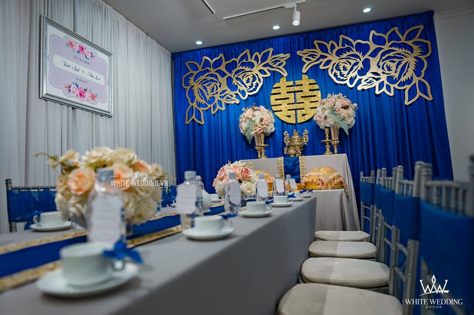 BLUE DREAM - SẮC XANH TƯƠI MÁT TRÀN ĐẦY SỨC SỐNG Trang trí lễ gia tiên - Được lấy cảm hứng từ màu của trời và biển bao la, rộng lớn mang lại cảm giác sâu thẳm, vững vàng và xanh dương còn là gam màu mang đến sự yên bình. Trong tình yêu, màu xanh dương biểu trưng cho một tình cảm gắn kết bền lâu, trong sáng và tinh khiết, ẩn chứa lời chúc phúc trăm năm yên bình mãi bên nhau. Lưu ý: • White Wedding sẽ tới nhà quý khách khảo sát trước khi trang trí set up. Thông thường set up hoàn thiện trước ngày lễ 1 ngày • Miễn phí phí vận chuyển và lắp đặt trang trí nhà trong vòng bán kính 5km (tính từ công ty)