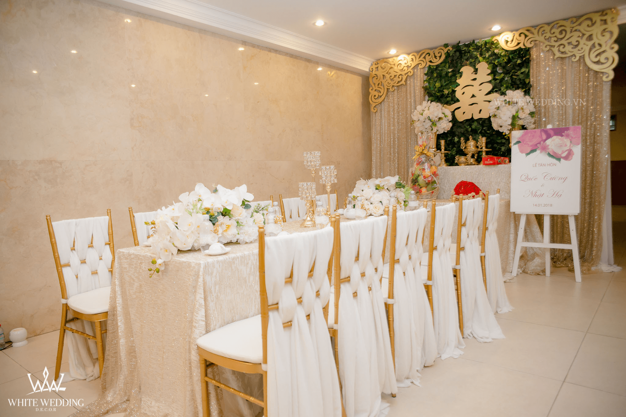 • White Wedding sẽ tới nhà quý khách khảo sát trước khi trang trí set up. Thông thường set up hoàn thiện trước ngày lễ 1 ngày