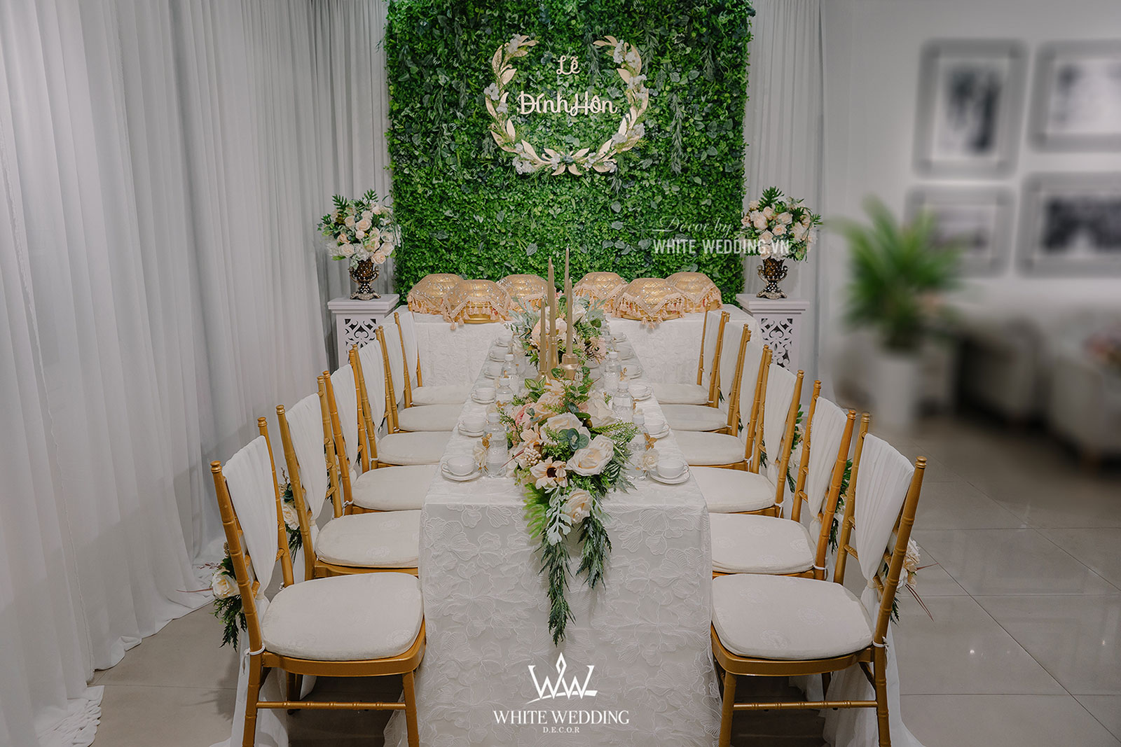 ROSABELLA THIẾT KẾ QUYẾN RŨ NHẸ NHÀNG TINH TẾ Trang trí gia tiên không chỉ là một trong những phần chuẩn bị quan trọng trong ngày cưới, vì đây là cách thể hiện phép lịch sự của gia chủ, qua đó góp phần tạo nên không gian buổi lễ trở nên trang trọng. Lưu ý: • White Wedding sẽ tới nhà quý khách khảo sát trước khi trang trí set up. Thông thường set up hoàn thiện trước ngày lễ 1 ngày • Miễn phí phí vận chuyển và lắp đặt trang trí nhà trong vòng bán kính 5km (tính từ công ty)